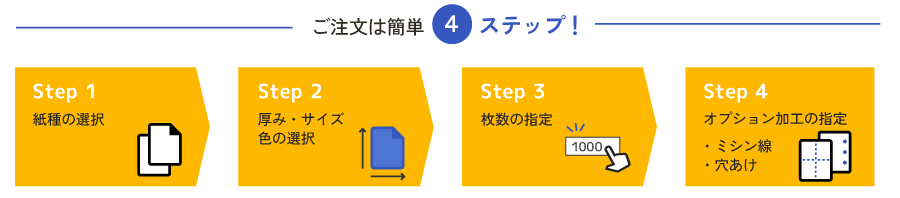 お客様のご指定の「紙種」「厚み」「色」「サイズ」の紙をオーダーメイドで制作いたします。