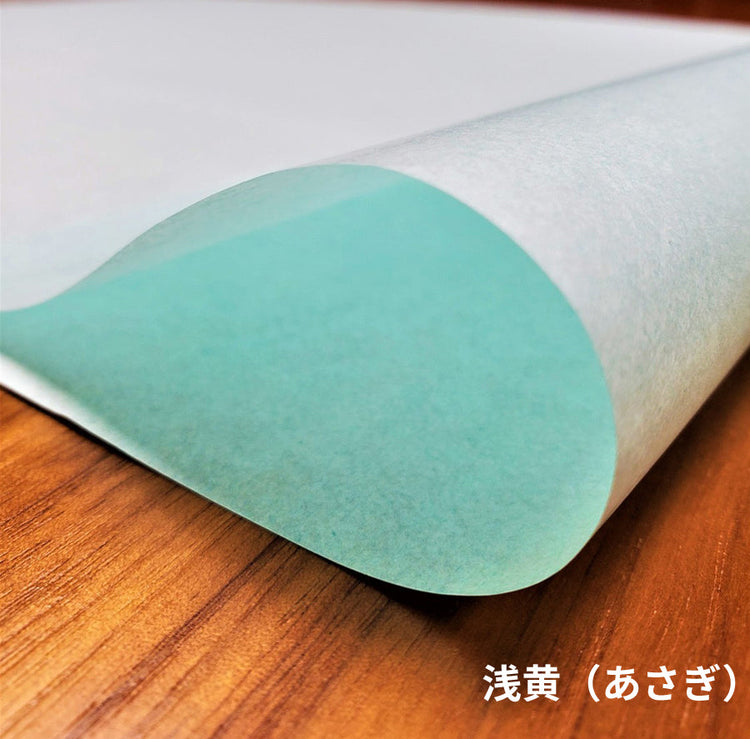 純白ロール紙に4色(鶯、クリーム、浅黄、桃)の色を付けた当店オリジナル包装紙です。