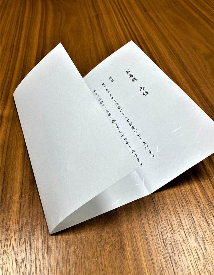 大礼紙の特徴である模様は楮(こうぞ)と呼ばれる繊維で作られています。楮の出方は様々で、一枚一枚模様が異なり色々な表情を見せてくれます。